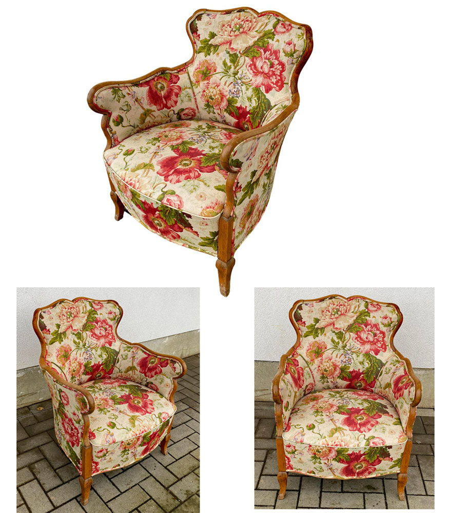 INS 1835 Fauteuil de style Louis XV, tissu refait récemment