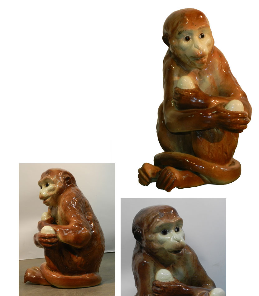 Boulogne, Desvres ? Singe en céramique, yeux en verre. Travail Français vers 1900/1930.