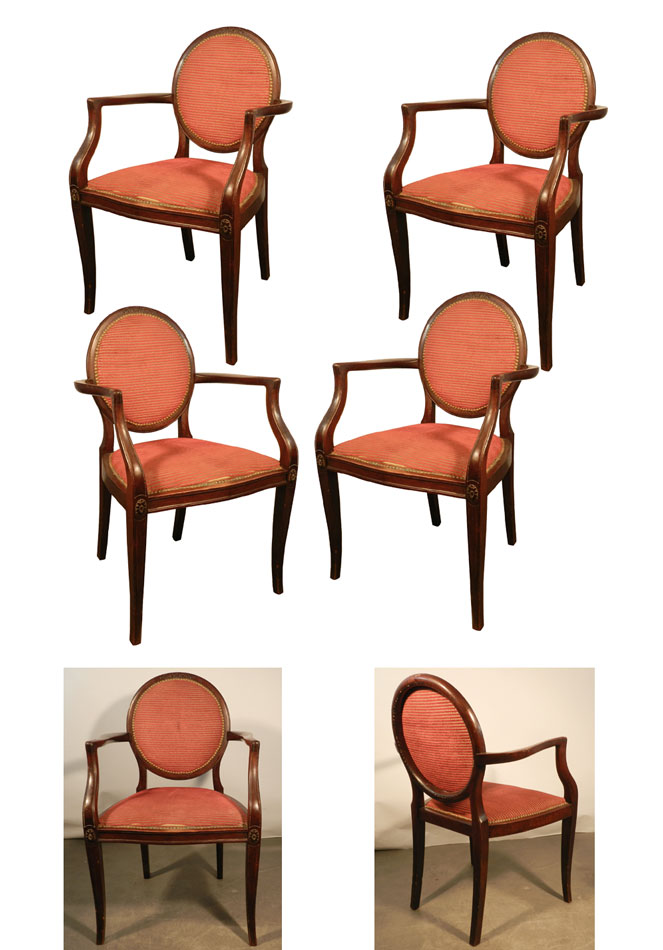 4 Fauteuils 1930 Acajou A Restaurer AD 702 DIMENSIONS EN CM Hauteur Longueur Largeur Diamètre Hauteur assise Retour page Art Déco