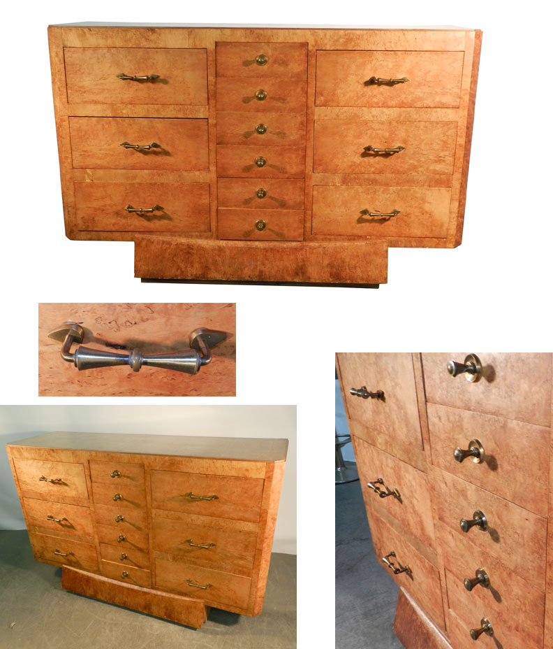 AD 764 ALFRED PORTENEUVE, COMMODE EPOQUE ART DECO EN PLACAGE DE BOULEAU DE NORVEGE