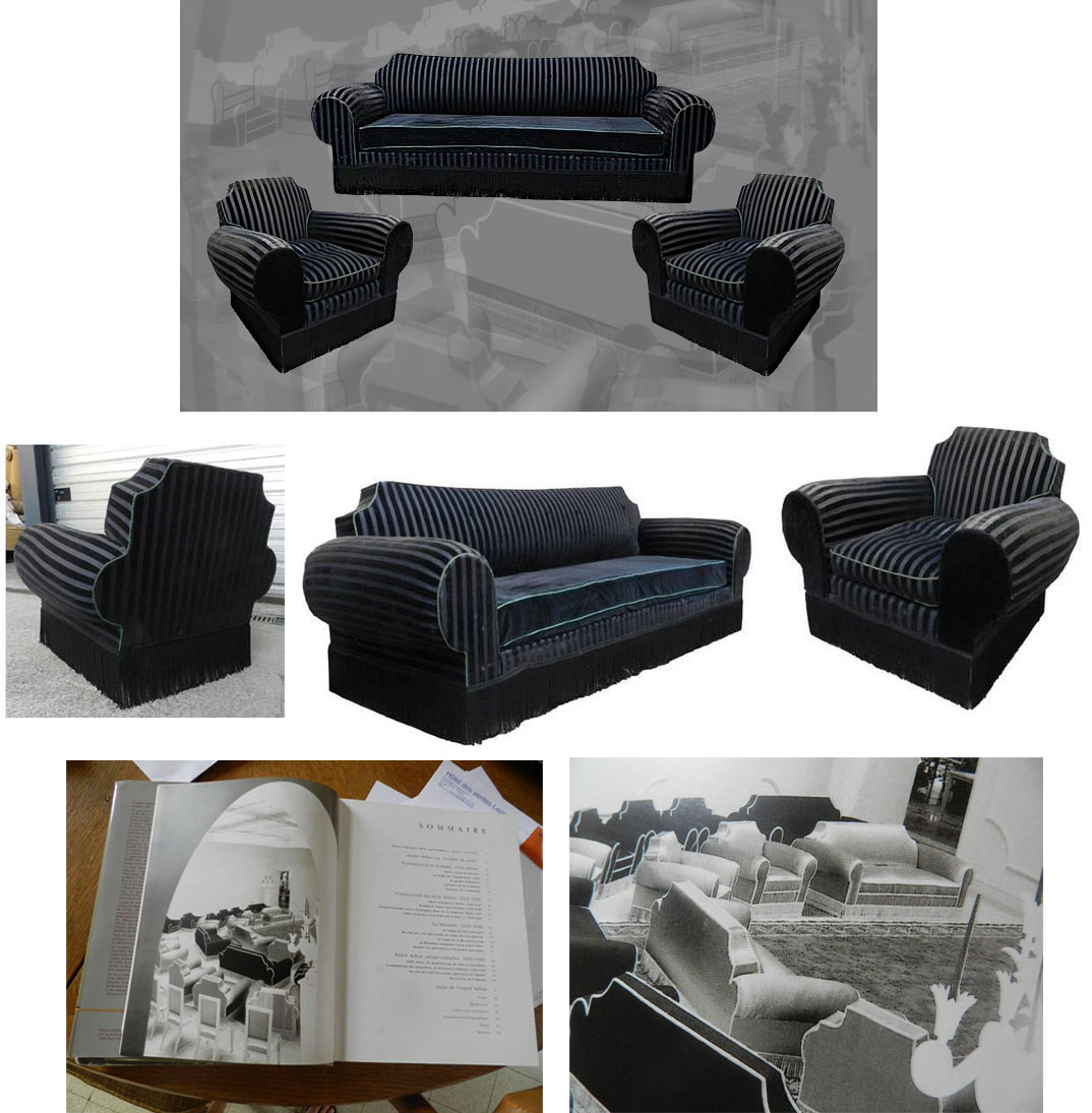 ANDRE ARBUS Salon 1940/1950 composé d'un grand canapé et de deux fauteuils