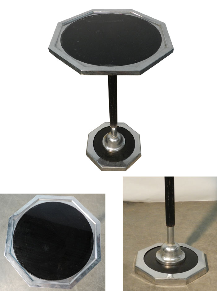 PETIT GUERIDON, OU TABLE D'APPOINT EN BOIS NOIRCI, METAL CHROME ET VERRE TEINTE VERS 1930/1950