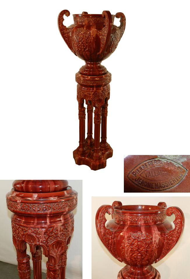PIERRE PERRET ET JEROME MASSIER fils, IMPORTANT COMPLET EN CERAMIQUE EMAILLEE, A DECOR ORIENTALISTE,
