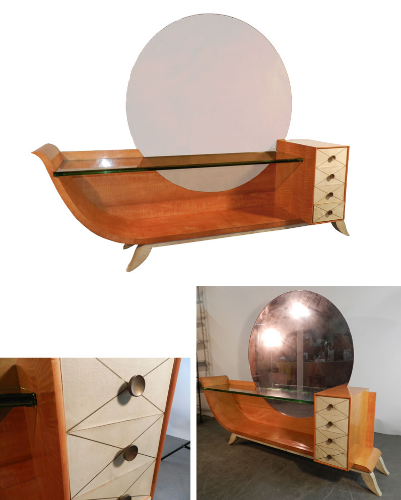 Tres Grande Coiffeuse époque Art Déco, Acajou Blond, Parchemin Et Miroir