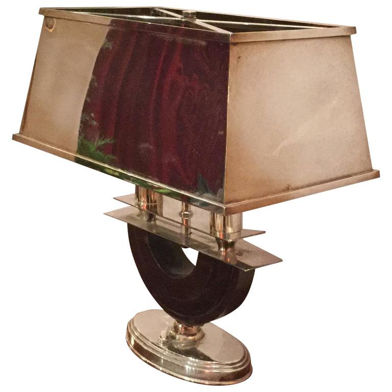 AD 916 Lampe en bois de macassar et argent attribuée à Maison Jansen.