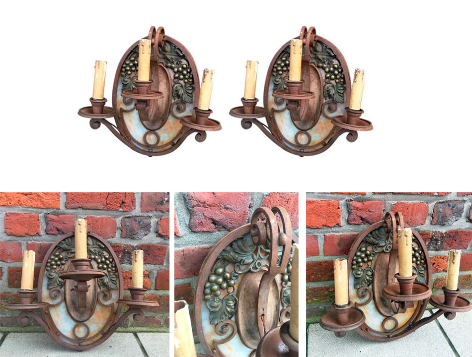 Paire d 'appliques Art Deco dans le style d'Edgar Brandt AD 941 DIMENSIONS EN CM Hauteur 36 Profondeur 22 Largeur 37 Diamètre Hauteur assise Retour page Art Déco SaveSaveSaveSave