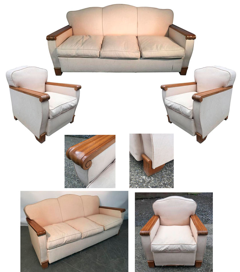 Gaston Poisson, salon Art Deco en acajou blond vers 1935. AD 951 DIMENSIONS EN CM Hauteur Longueur Largeur Diamètre Hauteur assise Retour page Art Déco SaveSaveSaveSave
