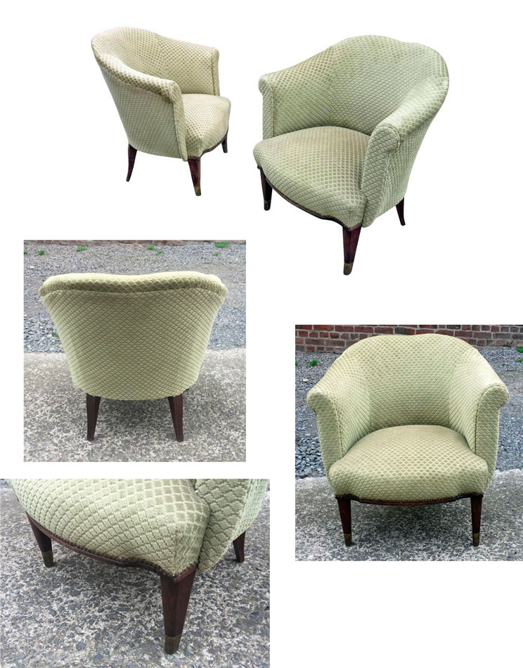 Paire de fauteuils Epoque Art Deco vers 1940 AD 964 DIMENSIONS EN CM Hauteur Longueur Largeur Diamètre Hauteur assise Retour page Art Déco Enregistrer