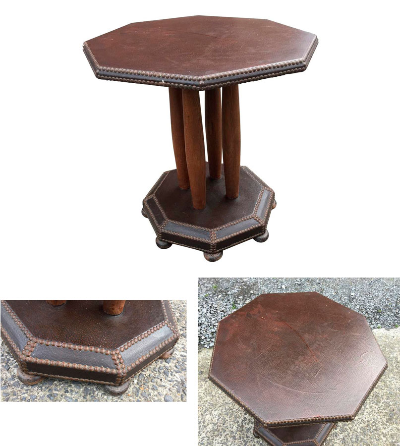 Guéridon Art Deco en chêne et cuir vers 1930 AD 978 DIMENSIONS EN CM Hauteur 72 Longueur 70 Largeur 70 Diamètre Hauteur assise Retour page Art Déco