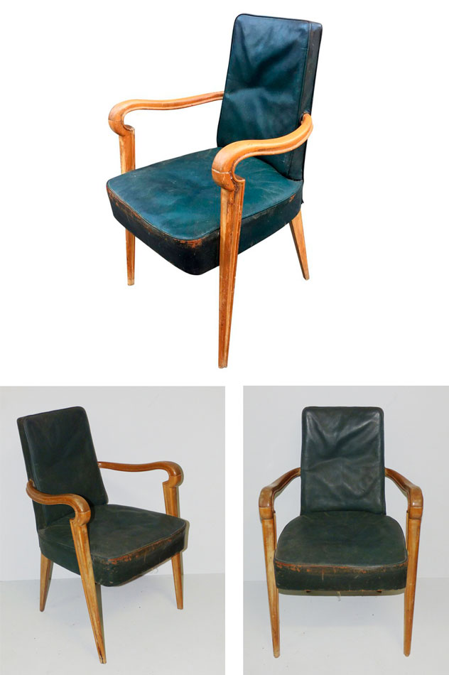AD 1016 Fauteuil en hêtre et cuir vers 1940, attribué à Jules Leleu. Featured