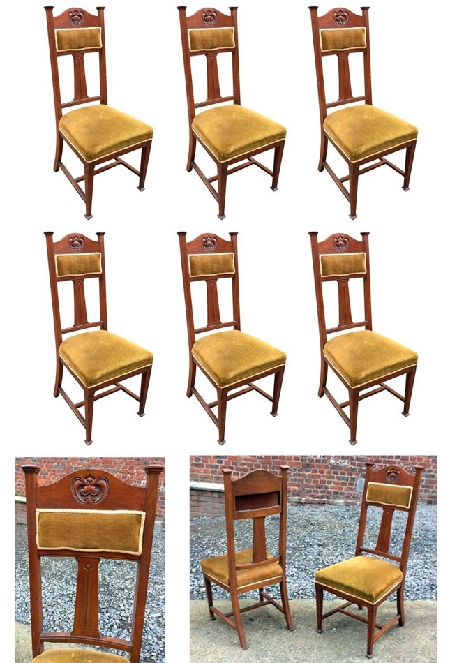 AD 1024 Série de six chaises Art Nouveau en acajou, Featured