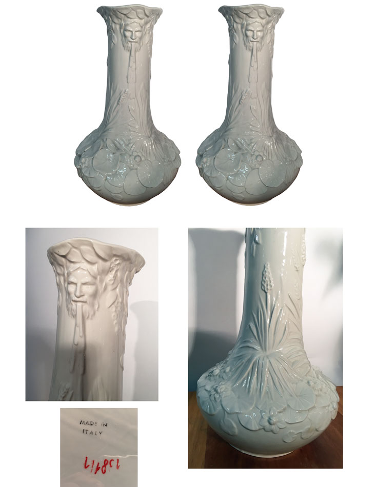 Paire de grands vases Art Nouveau en céramique. Italie vers 1950.