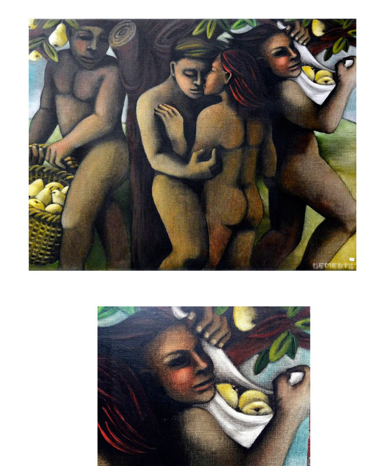 Michèle DEMEDTS (1958-), huile sur toile signée DEMEDTS, Belgique circa 1990. AD 1054 DIMENSIONS EN CM Hauteur 113 Longueur Largeur 145 Diamètre Hauteur assise Retour page Art Déco