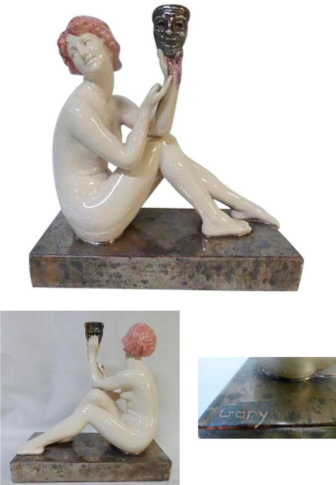 "Nu au masque" groupe Art Deco en céramique, signé Gory. AD 1059 DIMENSIONS EN CM Hauteur 39 Longueur Largeur 38 Diamètre Hauteur assise Retour page Art Déco