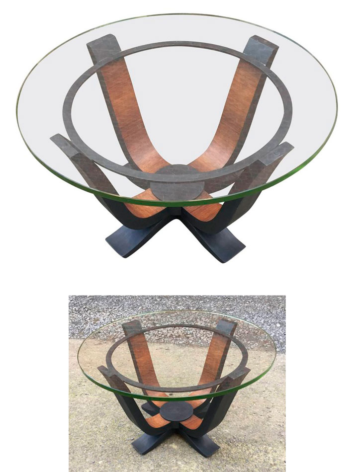 AD 10510 Guéridon en palisandre, bois noirci et verre Featured