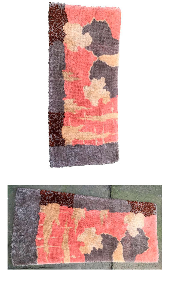 Petit tapis Art Déco en laine vers 1930. AD 10512 DIMENSIONS EN CM Hauteur Longueur 130 Largeur 55 Diamètre Hauteur assise Retour page Art Déco