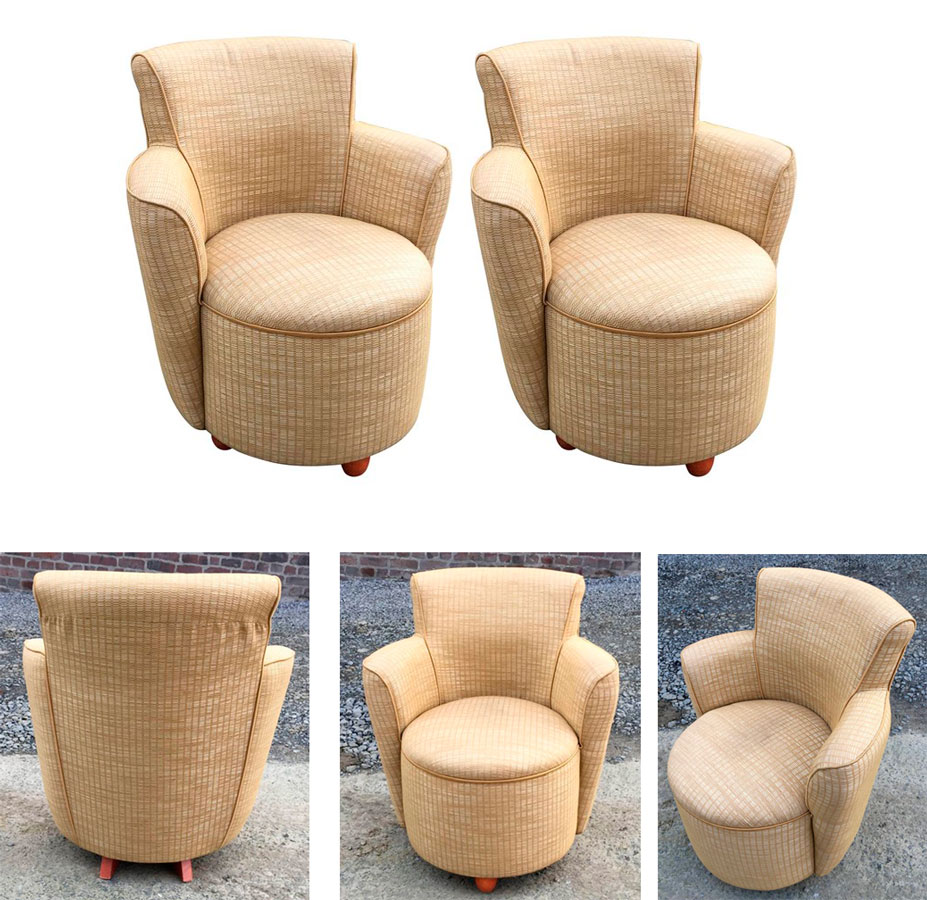 Paire de fauteuils Art Deco vers 1950. AD 1061 DIMENSIONS EN CM Hauteur 73 Profondeur 70 Largeur 58 Diamètre Hauteur assise Retour page Art Déco