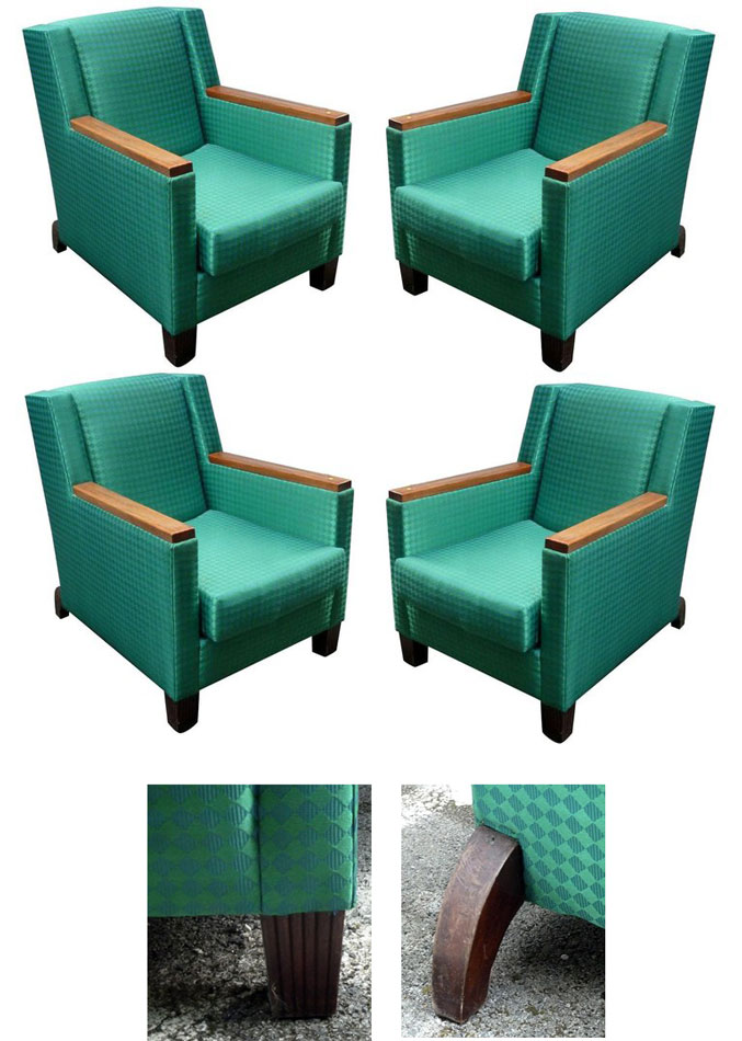 Dominique, 4 fauteuils Art Deco vers 1935. AD 1131 DIMENSIONS EN CM Hauteur 112 Largeur 83 Profondeur 94 Diamètre Hauteur assise Retour page Art Déco