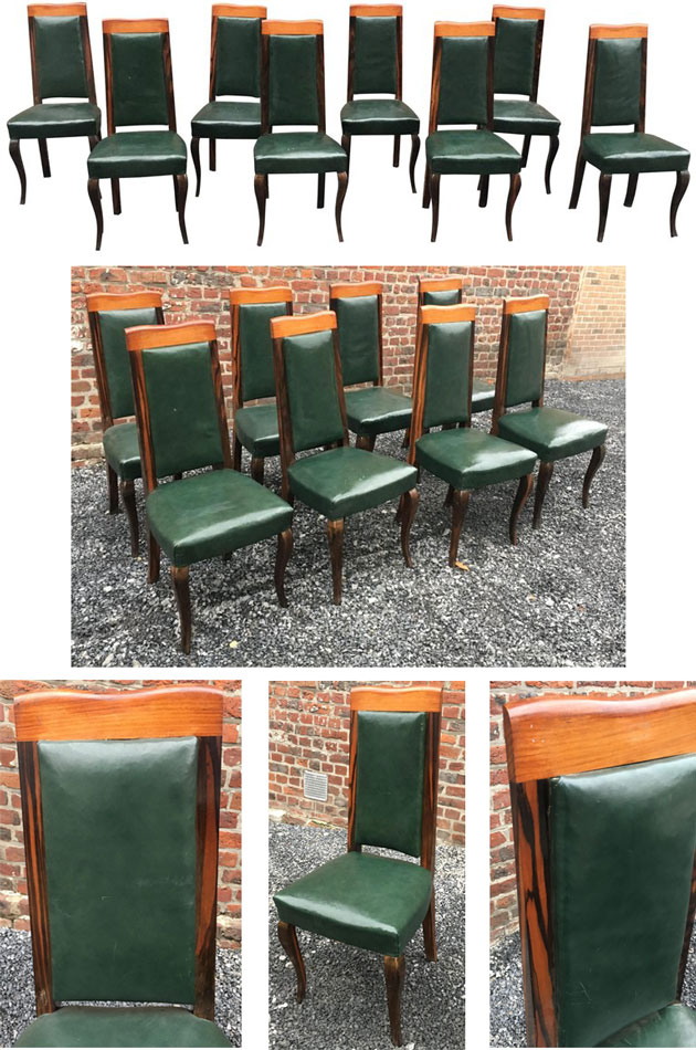 AD 1155 Suite de 8 chaises Epoque Art Deco en ébène de macassar et cuir circa 1930 Featured