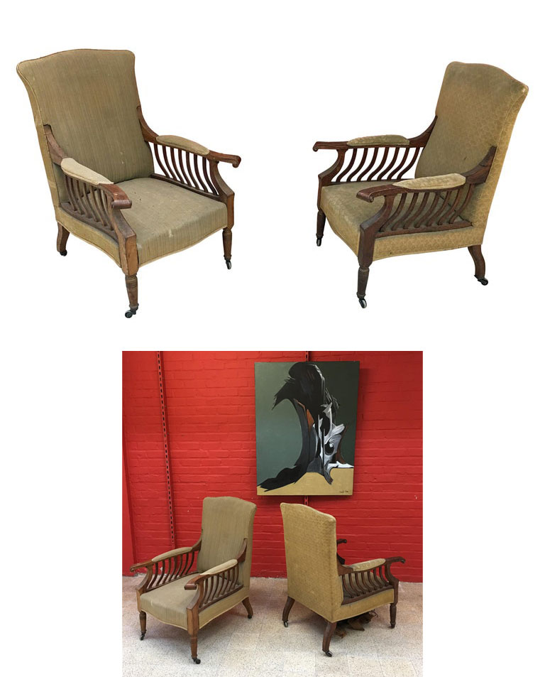 Paire de fauteuils Arts & Crafts en acajou vers 1900 AD 1243 DIMENSIONS EN CM Hauteur 98 Largeur 60 Profondeur 53 Diamètre Hauteur assise 37 Retour page Art Déco