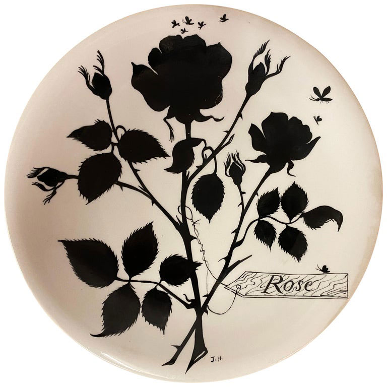 Jeannine Hétreau, plat à décor de roses stylisées pour Primavera, sous la direction de Colette Gueden, circa 1950.