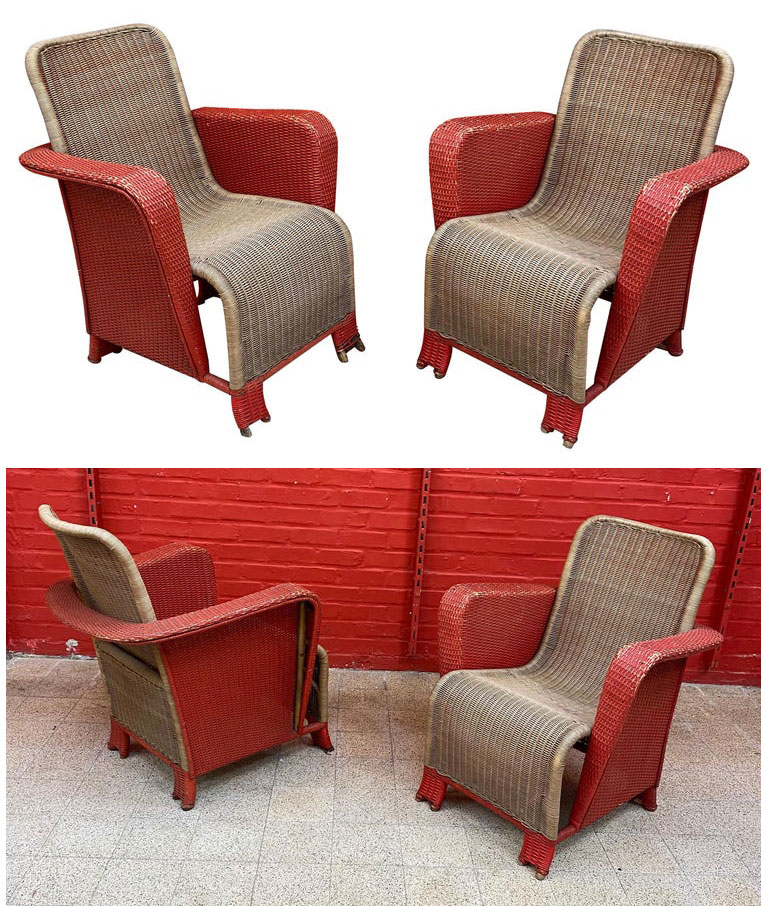 Paire de fauteuils Art Déco en rotin circa 1930 AD 1426 DIMENSIONS EN CM Hauteur 88 Largeur 70 Profondeur 75 Diamètre Hauteur assise Retour page Art Déco