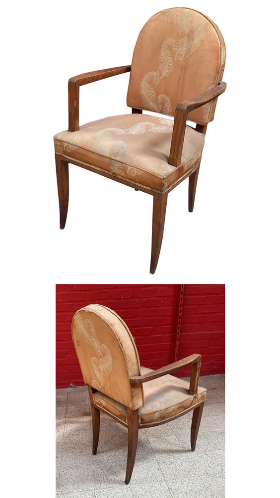 Elegant fauteuil Art Deco en chêne, circa 1930 AD 1444 DIMENSIONS EN CM Hauteur Largeur Profondeur Diamètre Hauteur assise Retour page Art Déco