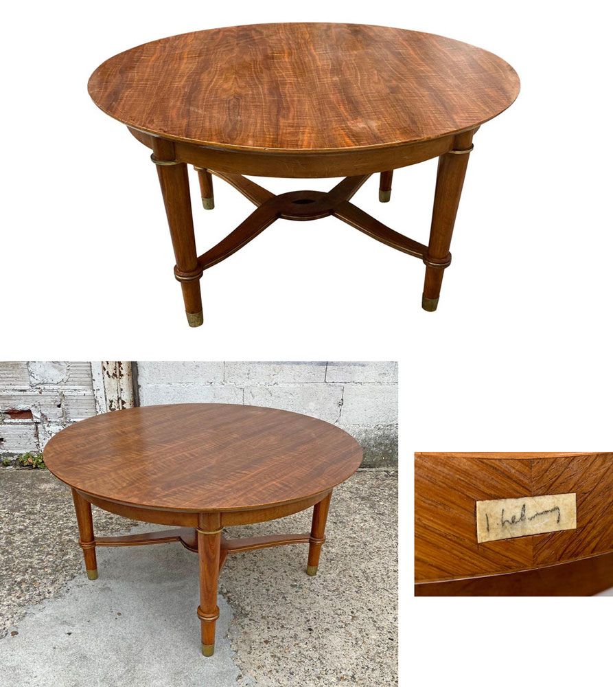AD 1448 Jules Leleu. Guéridon Art Déco en en noyer et bronze Featured