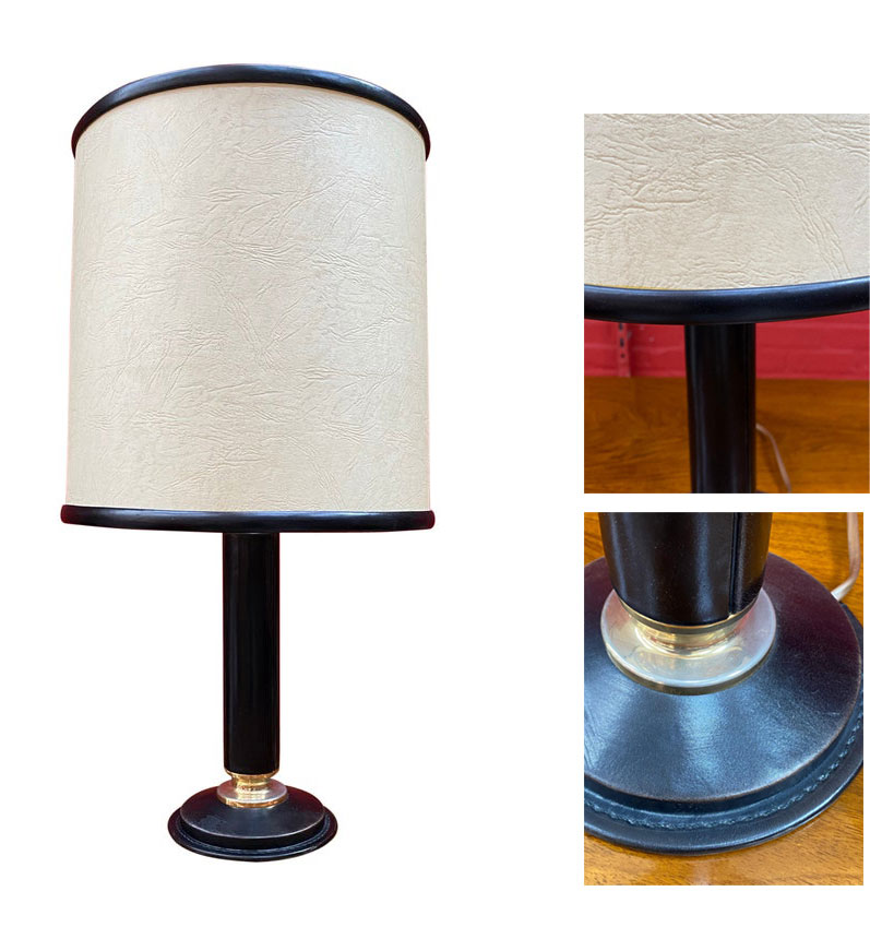 Lampe en cuir dans le style de Jacques Adnet, abat-jour original vers 1950.