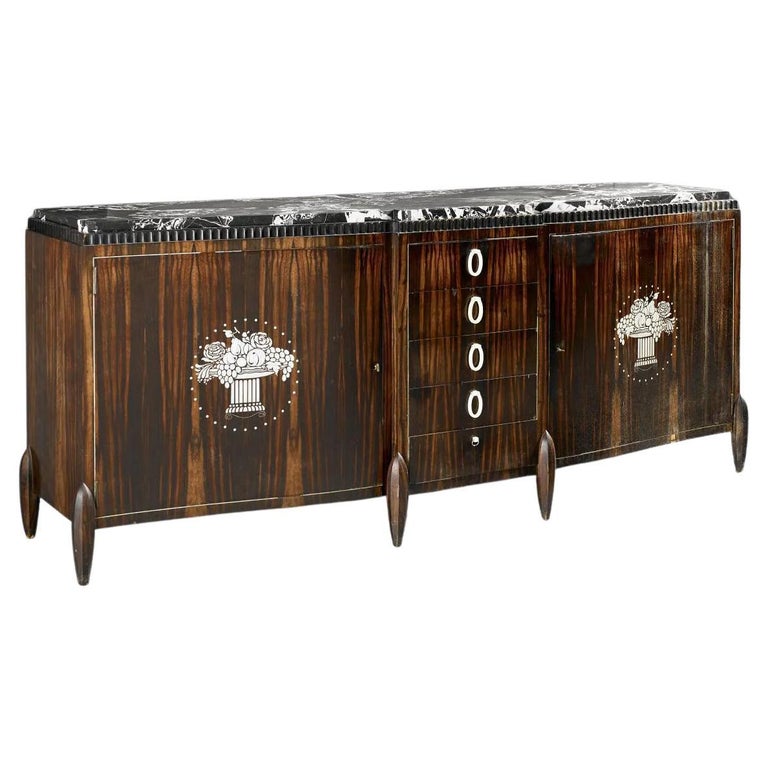 Exceptionelle Enfilade Art Deco En ébène De Macassar , Marbre Et Ivoire Circa 1925 AD 1461 DIMENSIONS EN CM Hauteur 101 Largeur 245 Profondeur 66 Diamètre Hauteur assise Retour page Art Déco
