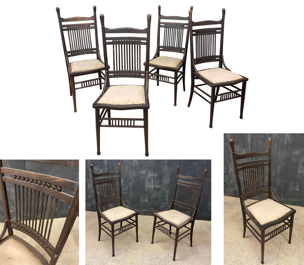 4 Originales Chaises En Chêne Circa 1900 AD 1512 DIMENSIONS EN CM Hauteur Largeur Profondeur Diamètre Hauteur assise Retour page Art Déco
