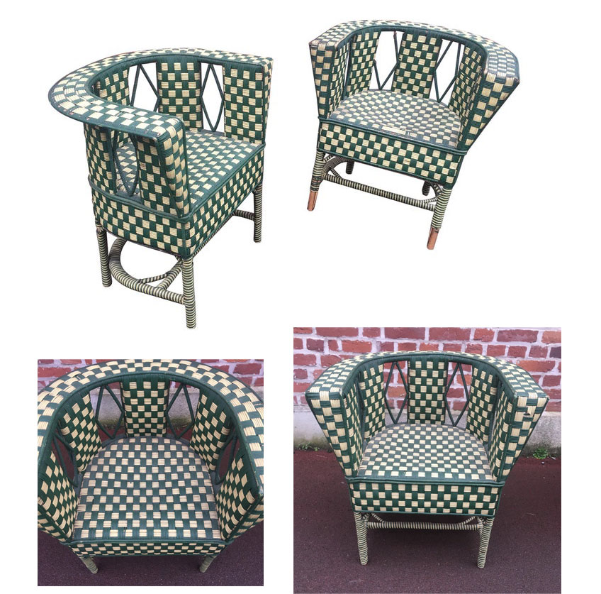 Paire de fauteuils en rotin circa 1930. AD 1516 DIMENSIONS EN CM Hauteur Largeur Profondeur Diamètre Hauteur assise Retour page Art Déco