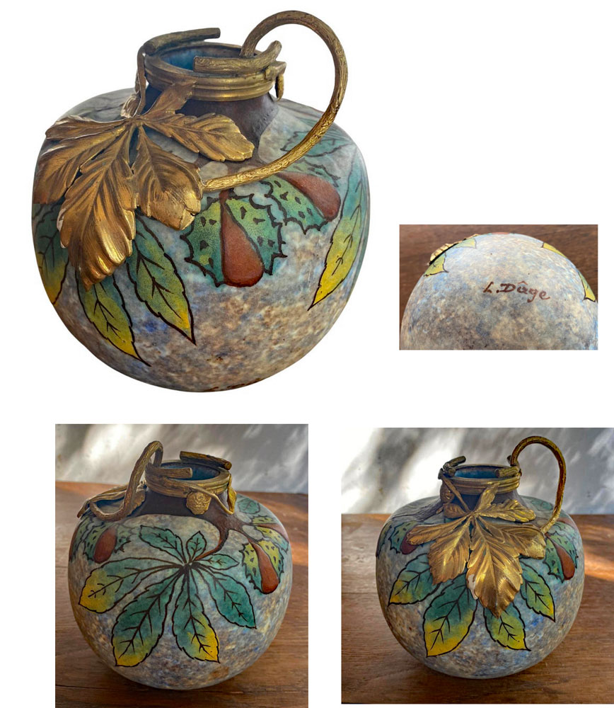 AD 1592 Louis Dage, Vase Art Deco en céramique et bronze Featured