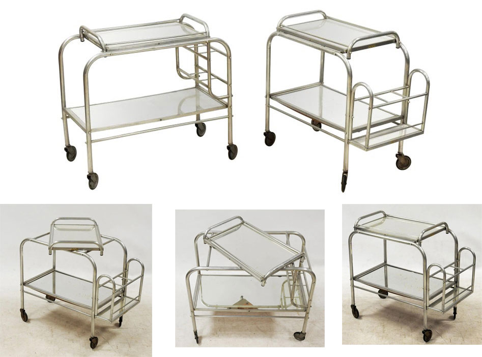 AD 1691 Deux Bars Roulants Art Deco En Aluminium Et Miroir