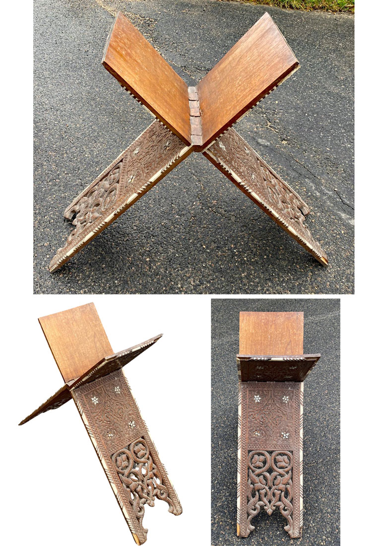 Travail oriental. Porte revue en bois sculpté, incrustation d'os et de nacre vers 1880