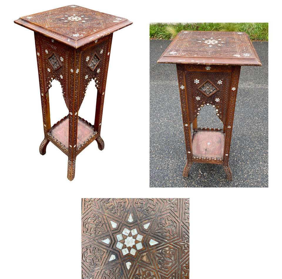 • AD 19610 Travail Syrien XIXème, Piédestal en bois sculpté, incrustation de nacre et d'os