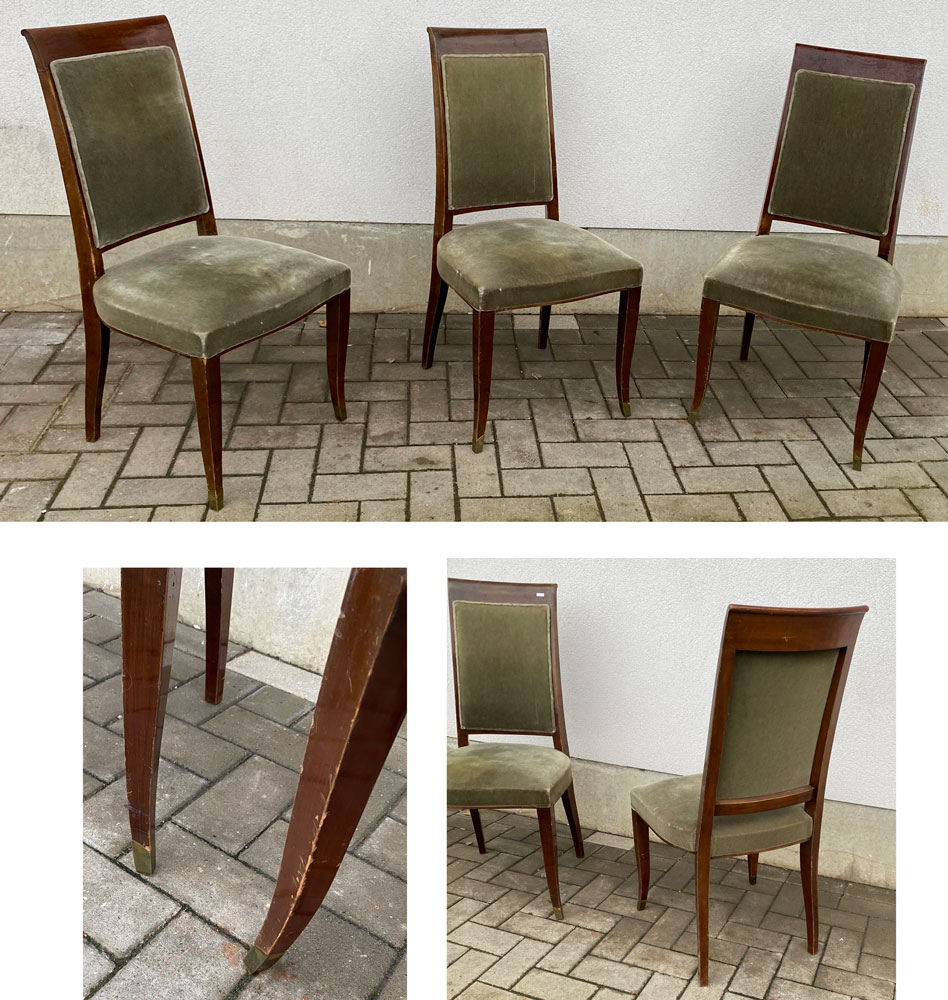 • AD 2031 Decoene Freres 3 grandes chaises Art Déco en noyer massif et velours