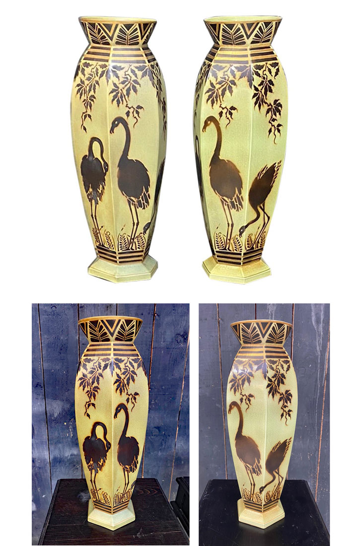 AD 1888 Orchies Paire de vases en céramique circa 1900