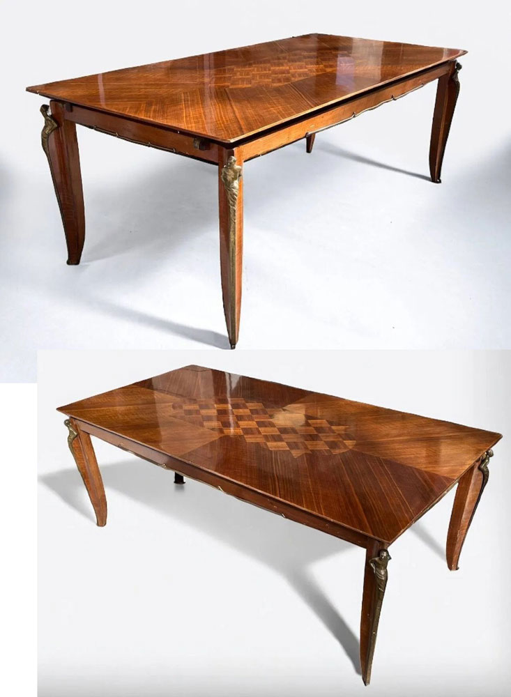 AD 1906 Elégante table art déco en palissandre à décor d'atalantes en bronze circa 1930