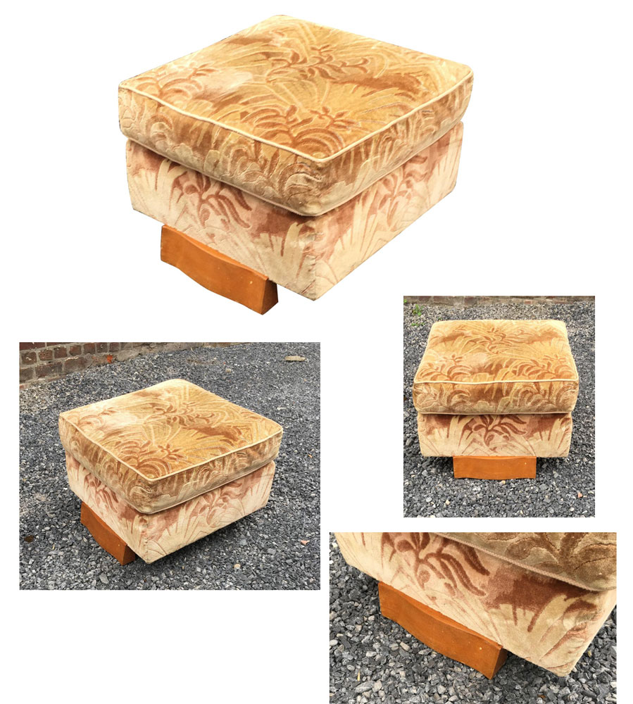 AD 1918 Tabouret Art Déco en hêtre et velours, vers 1930