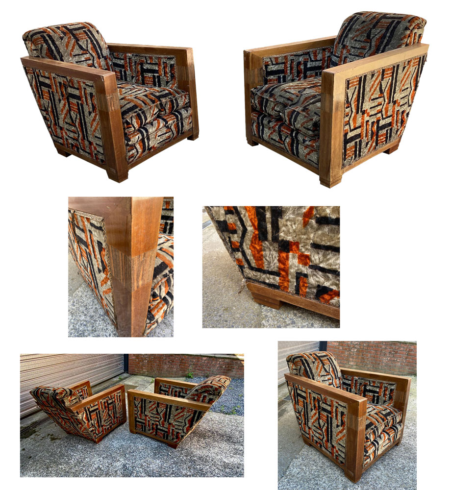 AD 1922 2 grands et profonds fauteuils Art Déco en acajou vers 1930.