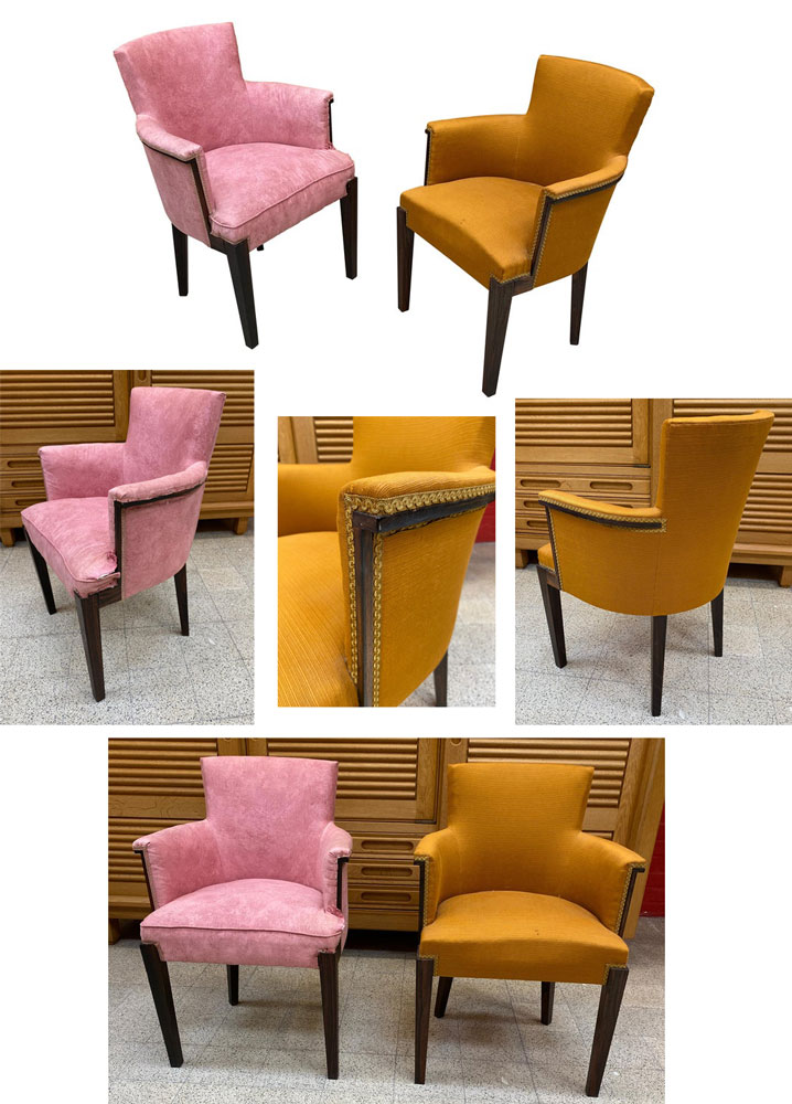 Paire d'élégants fauteuils Art Déco dans le style de Dominique, vers 1930-1940. AD 19219 DIMENSIONS EN CM Hauteur 83 Largeur 53 Profondeur 45 Diamètre Hauteur assise 50 Retour page Art Déco
