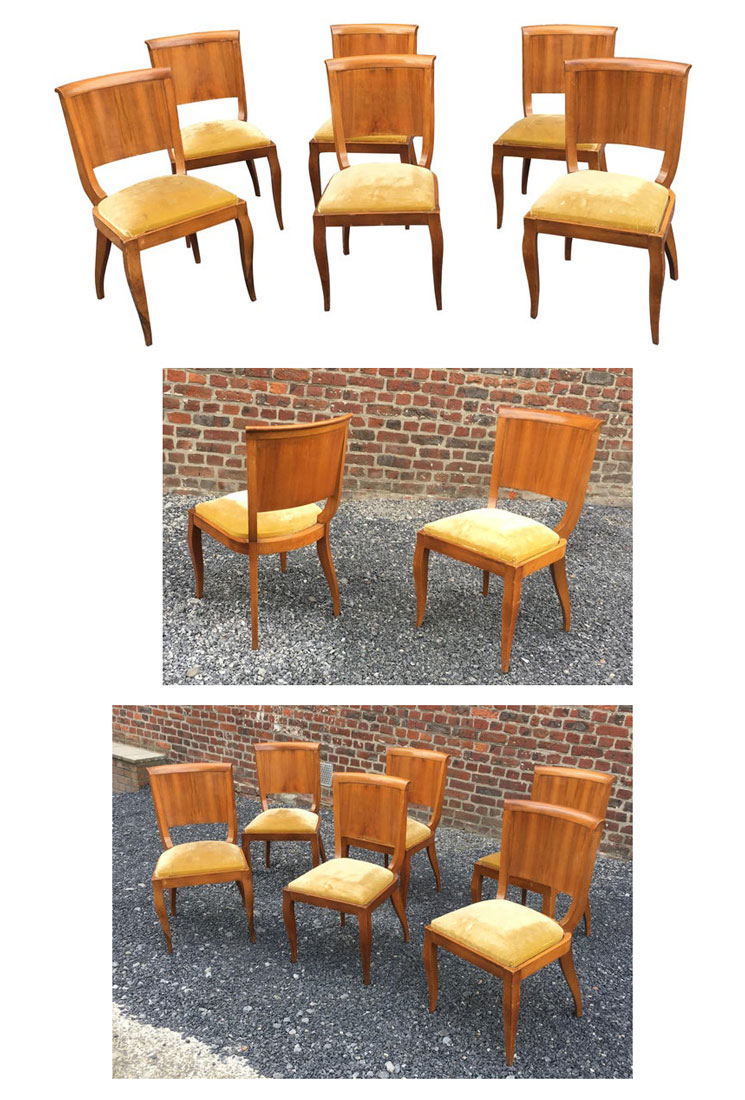 AD 1932 Suite de 6 chaises Art Déco en noyer et placage de noyer