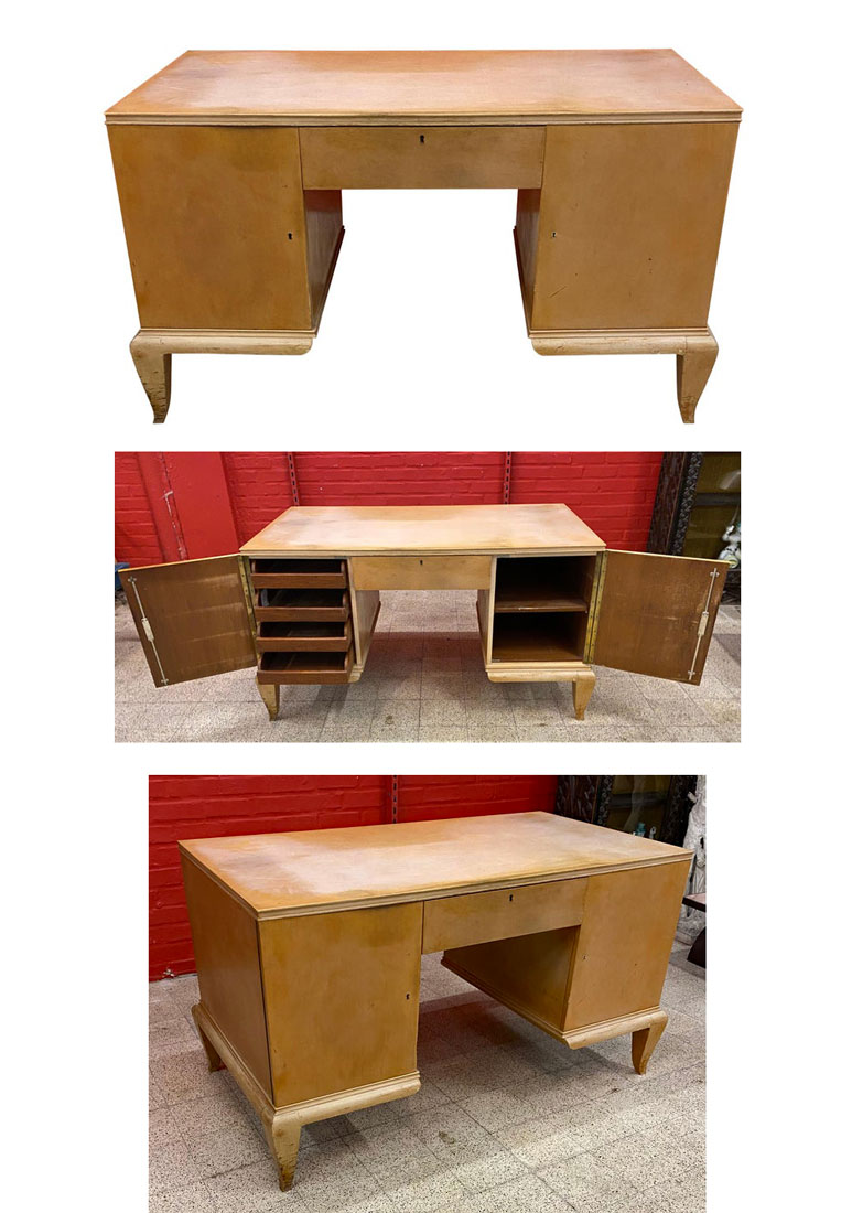 • AD 19210 Grand bureau Art Déco en chêne dans le style de Dominique