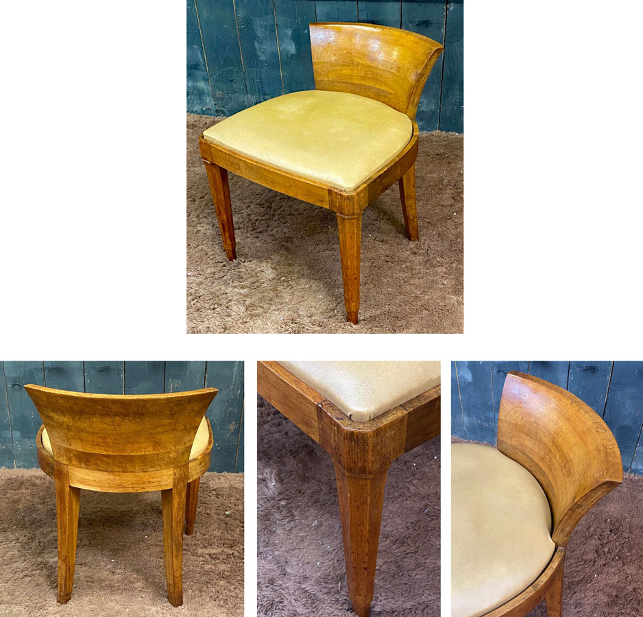 Siège De Coiffeuse Art Deco en noyer massif, circa 1930 AD 1967 DIMENSIONS EN CM Hauteur 54 Largeur 44 Profondeur 47 Diamètre Hauteur assise 42 Retour page Art Déco