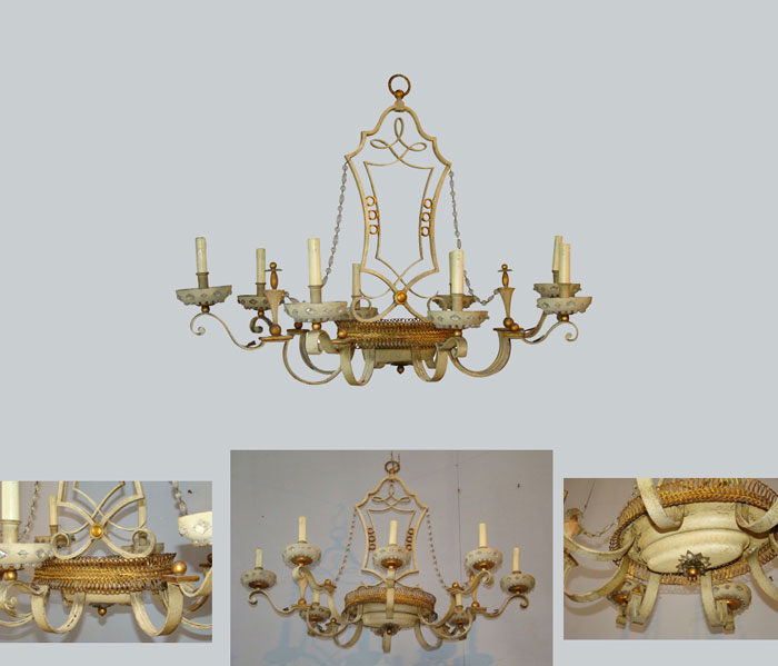 MAISON BAGUES LUSTRE EN TOLE LAQUEE ET DOREE, VERS 1950 AD2913 DIMENSIONS EN CM Hauteur 80 Longueur 110 Largeur 75 Diamètre Hauteur assise Retour page Art Déco
