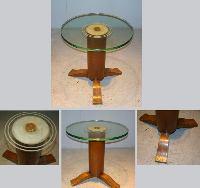 GUERIDON EPOQUE ART DECO EN CHENE ET PLATEAU VERRE AD2812 DIMENSIONS EN CM Hauteur 60 Longueur Largeur Diamètre 60 Hauteur assise Retour page Art Déco