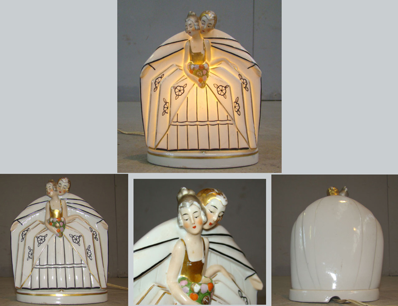 TRAVAIL FRANCAIS, VEILLEUSE ART DECO EN PORCELAINE AD292 DIMENSIONS EN CM Hauteur Longueur Largeur Diamètre Hauteur assise Retour page Art Déco
