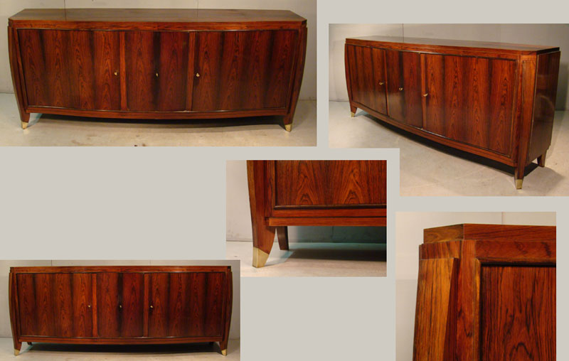 TRAVAIL FRANCAIS 1930, ENFILADE EN PLACAGE DE PALISSANDRE, SABOTS EN BRONZE DORE AD262 DIMENSIONS EN CM Hauteur 95 Longueur 230 Largeur 50 Diamètre Hauteur assise Retour page Art Déco