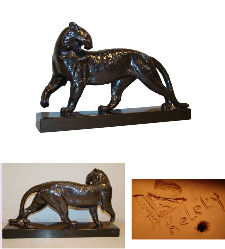 ALEXANDRE KELETY ET MARCEL GUILLARD, PANTHERE EN TERRE CUITE EMAILLEE,